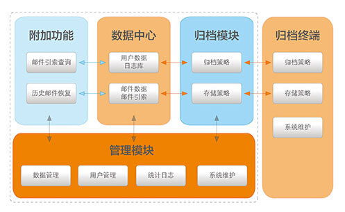 其次,在數據中心的管理端,實現郵件歸檔的策略以及歸檔數據的存儲策略極其豐富,除了實現歸檔的相關功能以外,還能為管理員提供便捷的存儲管理策略,減小了因郵件數據存儲空間增加而需要添加存儲設備的難度。