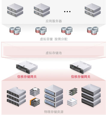 信核存儲資源統一管理解決方案通過存儲網關形式嵌入存儲系統,輕松突破傳統局限。