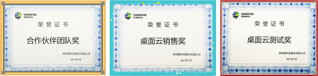 珠海網(wǎng)絡公司——易網(wǎng)科技團隊近日憑借出色的銷售營業(yè)額及技術,榮獲深信服桌面云銷售獎,桌面云測試獎、合作伙伴團隊獎。