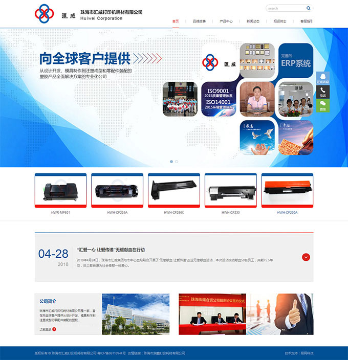 珠海市匯威打印機(jī)耗材有限公司是一家旨在向 客戶提供從設(shè)計開發(fā)、模具制作到注塑成型及零配件組裝的硒鼓塑膠產(chǎn)品全面解決方案的專業(yè)化公司。公司發(fā)展十余載,已建立了以中國本土市場為依托包括歐美、俄羅斯、澳洲、中東以及東南亞等幾十個國家和地區(qū)的客戶業(yè)務(wù)關(guān)系。特別在激光打印耗材硒鼓塑膠件這一領(lǐng)域,目前已成為規(guī)模最大的企業(yè)之一。