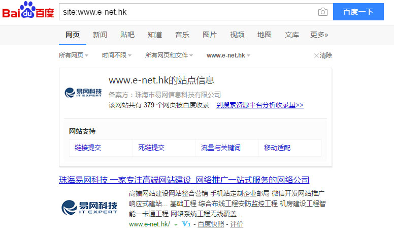 首頁先,需要知道網站是否被收錄及其收錄情況。可使用搜索引擎site命令,比如: